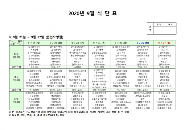 9월 넷째주 식단표 페이지 정보 작성자 은천노인복지회 작성일20-10-12 14:45 조회156,112회 댓글0건 관련링크 이전글 다음글 목록 답변 본문 . 이전글 다음글 목록 답변