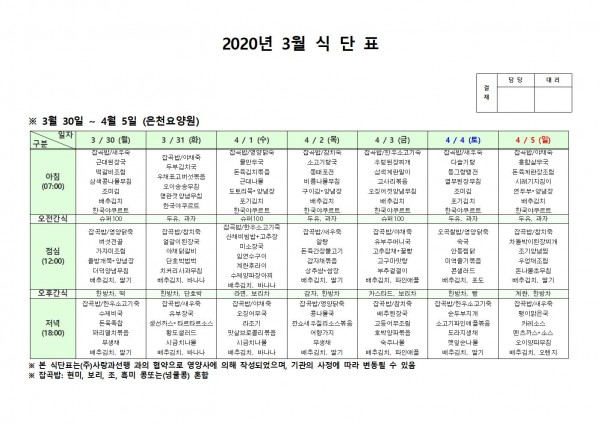 3월 다섯째주 식단표 페이지 정보 작성자 은천노인복지회 작성일20-04-06 14:47 조회174,256회 댓글0건 관련링크 이전글 다음글 목록 답변 본문 . 이전글 다음글 목록 답변