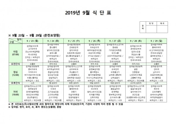 9월 넷째주 식단표 페이지 정보 작성자 은천노인복지회 작성일19-09-30 14:47 조회190,011회 댓글0건 관련링크 이전글 다음글 목록 답변 본문 9월 넷째주 식단표 이전글 다음글 목록 답변