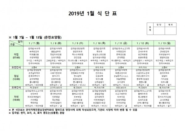 1월 첫째주 식단표 페이지 정보 작성자 은천노인복지회 작성일19-01-22 13:31 조회204,029회 댓글2건 관련링크 이전글 다음글 목록 답변 본문 1월 첫째주 식단표 이전글 다음글 목록 답변