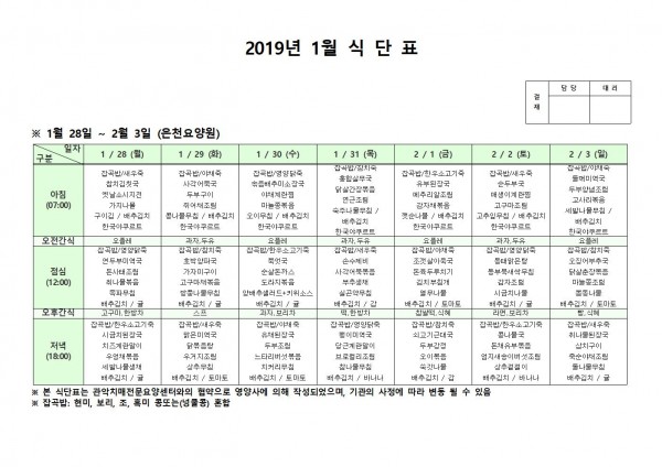 1월 넷째주 식단표 페이지 정보 작성자 은천노인복지회 작성일19-02-13 17:29 조회202,661회 댓글0건 관련링크 이전글 다음글 목록 답변 본문 1월 넷째주 식단표 이전글 다음글 목록 답변