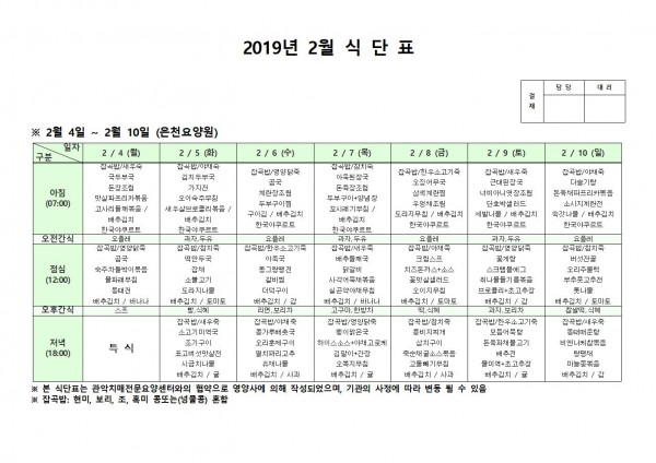 2월 첫째주 식단표 페이지 정보 작성자 은천노인복지회 작성일19-02-13 17:29 조회202,038회 댓글0건 관련링크 이전글 다음글 목록 답변 본문 2월 첫째주 식단표 이전글 다음글 목록 답변