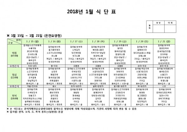 1월 셋째주 식단표 페이지 정보 작성자 은천노인복지회 작성일18-01-17 15:16 조회189,664회 댓글0건 관련링크 이전글 다음글 목록 답변 본문 1월 셋째주 식단표 이전글 다음글 목록 답변