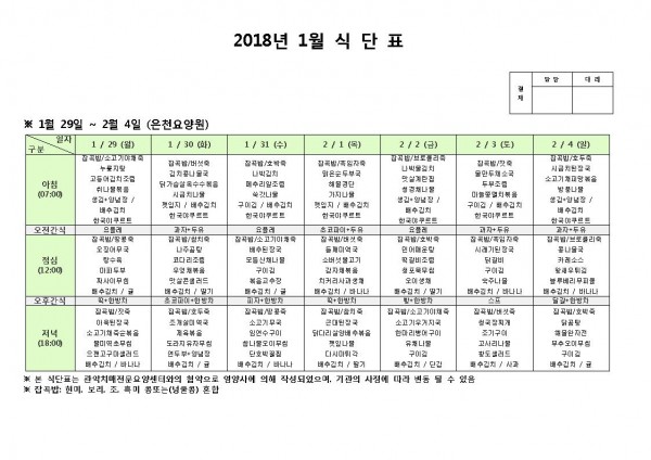 1월 다섯째주 식단표 페이지 정보 작성자 은천노인복지회 작성일18-01-31 13:35 조회190,717회 댓글0건 관련링크 이전글 다음글 목록 답변 본문 1월 다섯째주 식단표 이전글 다음글 목록 답변