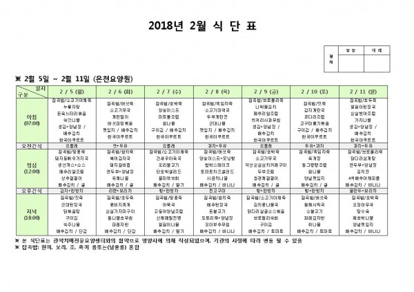 2월 첫째주 식단표 페이지 정보 작성자 은천노인복지회 작성일18-02-05 17:07 조회191,862회 댓글0건 관련링크 이전글 다음글 목록 답변 본문 2월 첫째주 식단표 이전글 다음글 목록 답변