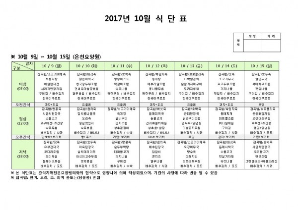 10월 둘째주 식단표 페이지 정보 작성자 은천노인복지회 작성일17-10-17 17:39 조회181,196회 댓글0건 관련링크 이전글 다음글 목록 답변 본문 10월 둘째주 식단표 이전글 다음글 목록 답변
