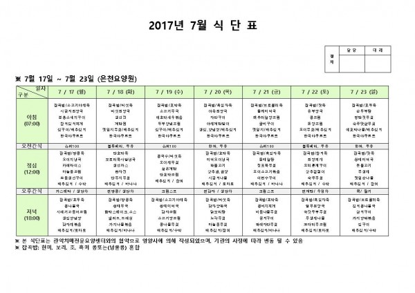 7월 셋째주 식단표 페이지 정보 작성자 은천노인복지회 작성일17-07-18 18:01 조회176,981회 댓글0건 관련링크 이전글 다음글 목록 답변 본문 7월 셋째주 식단표 이전글 다음글 목록 답변