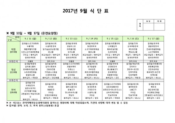 9월 둘째주 식단표 페이지 정보 작성자 은천노인복지회 작성일17-09-11 17:01 조회178,610회 댓글0건 관련링크 이전글 다음글 목록 답변 본문 9월 둘째주 식단표 이전글 다음글 목록 답변