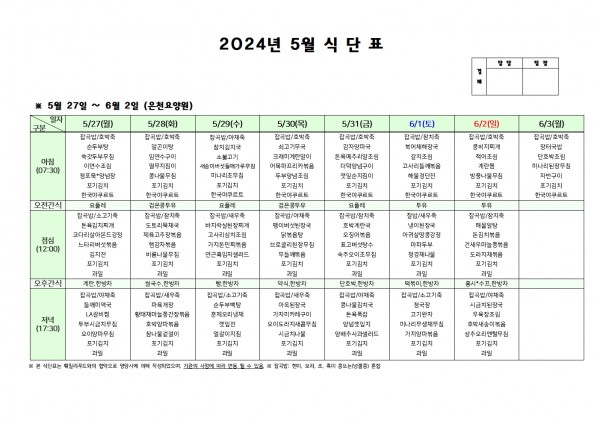 5월 다섯째주 식단표 페이지 정보 작성자 은천노인복지회 작성일24-05-24 16:18 조회22,901회 댓글0건 관련링크 이전글 다음글 목록 답변 본문 . 이전글 다음글 목록 답변