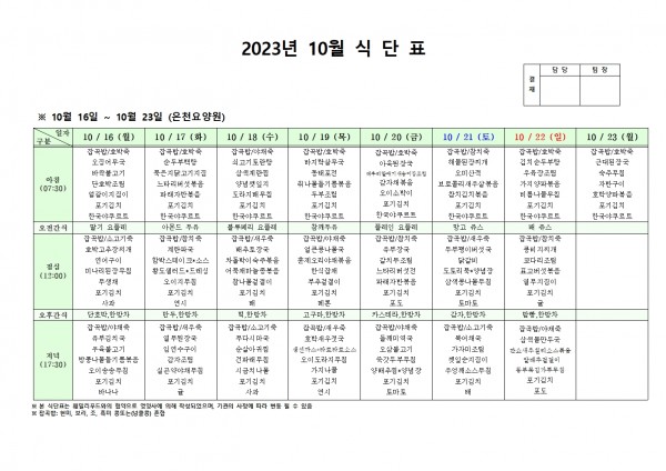 10월 셋째주 식단표 페이지 정보 작성자 은천노인복지회 작성일23-10-12 17:24 조회34,498회 댓글0건 관련링크 이전글 다음글 목록 답변 본문 . 이전글 다음글 목록 답변