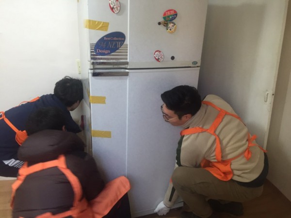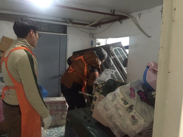 시설관리공단 봉사단과 함께 물을 퍼내고 가재도구를 옮기며
