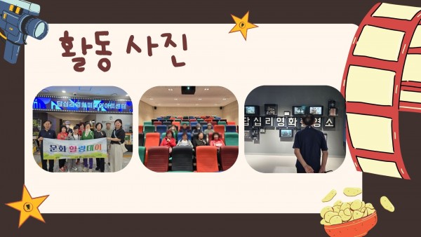[서울시동대문구재가노인복지기관] 5월 문화체험활동 '영화관람' 페이지 정보 작성자 은천노인복지회 작성일25-06-11 14:39 조회2,430회 댓글0건 관련링크 이전글 다음글 목록 답변 본문 촬영소 사거리에 위치한 '답십리영화미디어아트센터'에서 영화 관람을 진행하였습니다! 이전글 다음글 목록 답변