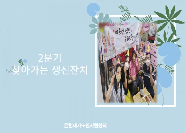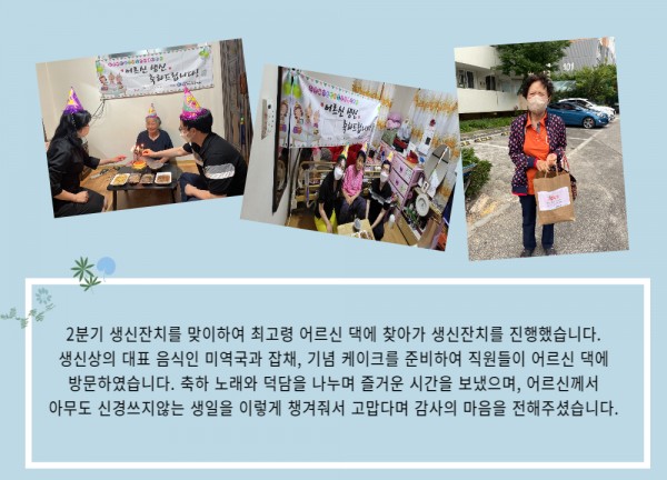 [재가노인지원서비스] 2분기 찾아가는 생신잔치 페이지 정보 작성자 은천노인복지회 작성일22-07-06 13:26 조회17,306회 댓글0건 관련링크 이전글 다음글 목록 답변 본문 2분기 찾아가는 생신잔치 이전글 다음글 목록 답변