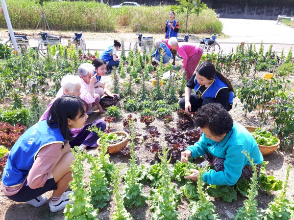 [특화프로그램]해성컨벤션고등학교와 함께하는 텃밭가꾸지 페이지 정보 작성자 은천노인복지회 작성일17-06-14 18:08 조회7,911회 댓글0건 관련링크 이전글 목록 답변 본문 중랑천 텃밭에서 해성국제컨벤션고 학생들과 함께 상추를 뜯어왔습니다. 뜯어온 상추는 저녁식사때 어르신들 모두 나누어 드셨습니다. 이전글 목록 답변