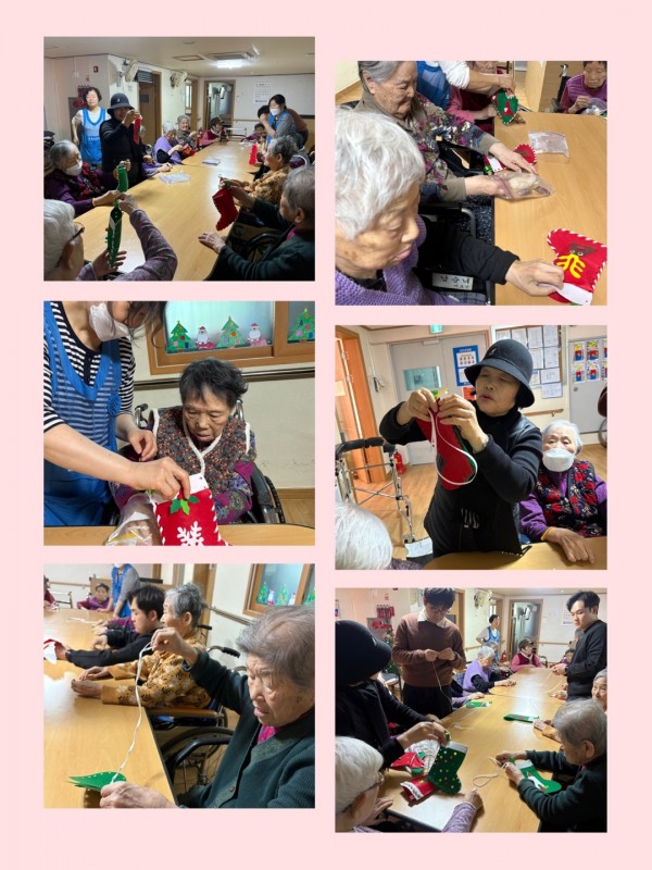 12월 19일 미술치료 프로그램 페이지 정보 작성자 은천노인복지회 작성일24-12-19 14:57 조회4,386회 댓글0건 관련링크 이전글 다음글 목록 답변 본문 바느질하여 산타양말 만들기♥ 이전글 다음글 목록 답변